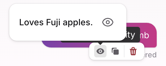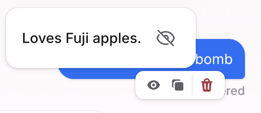 - To see what memory a given message created, press and hold the message and tap the 👁️ icon.